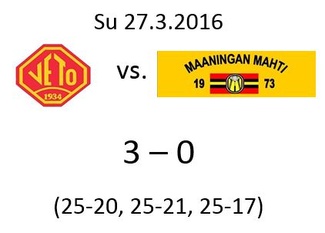 Pitkähkön tauon jälkeen Mahtimiehet palasivat kotisaliin sarjapelin merkeissä. Vastustajaksi saapui kova mittari, Susiraja Volleyn joukkue Joensuusta/Liperistä. Mahdin vierailu Reijolaan syksyllä tuotti 3-2 tappion, joten revanssimielellä Mahtimiehet ottivat vieraat vastaan. SurVon matka Maaningalle oli ollut lumituiskuinen ja lisää lunta tupaan heille tarjosi kotijoukkue Mahti, joka otti otteluvoiton suoraan 3-0.