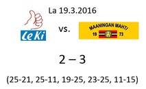 Finaalien toinen osaottelu pelataan ensi lauantaina klo 18.00 Lempäälässä Hakkarin Liikuntahallilla, jossa LeKi saa taakseen kotiyleisönsä tuen. Mahti-faneja on ilahduttavasti lähdössä reissuun myös reilut 30, joten eiköhän Lempääläänkin saada aikaiseksi tunnelmallinen ja finaalien arvoinen tapahtuma! Mikäli LeKi voittaa varsinaisen ottelun, pelataan heti perään ratkaiseva 15 pisteen "kultainen erä". Jos taas Mahti voittaa ottelun, on se 1-sarjan mestari kaudella 2015-2016.