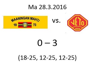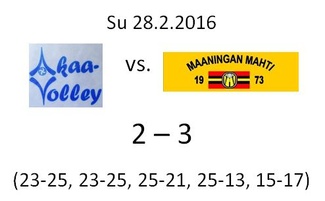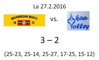 Mahti ja Akaa-Volley pelasivat sunnuntaina 28.2. puolivälierien toisen osaottelun Akaan kotikentällä Toijalan Monitoimitalolla. Ottelusta tuli aivan samanlainen kuin edellisenä päivänä Maaningalla pelatusta, eli Mahti taisteli ensin erävoitot kahdesta ensimmäisestä erästä Akaan käynnistellessä koneistoaan. Kolmas ja etenkin neljäs erä olivat Akaan näytöstä, kunnes päästiin jälleen siihen ratkaisevaan viidenteen erään. Siinä tapahtui jälleen hengen voitto materiasta, sillä Mahtimiehet taistelivat isolla sydämellä ja todella kapealla materiaalilla läpi väsymyksen ja kaikki tappiota povanneet ennakkoarviot murskaten VOITTOON!