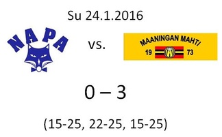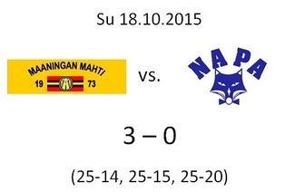Napakettujen nuorelle joukkueelle täytyy antaa täysi tunnustus hienosta ottelusta ja 3-1 voitosta. NaPa hallitsi ottelua koko ajan lukuunottamatta toisen erän loppua, jossa Juhin syöttövuorolla Mahti kipusi erävoittoon oltuaan erässä jo selkeästi tappiolla. Edes hieno nousu toisen erän voittoon ja sitä seurannut 5-1 johto kolmannen erän alussa ei vapauttanut Mahdin peliä, vaan erinomaisen syöttö-vastaanottopelin pelannut ja sen ansiosta myös hienosti puolustanut ja hyökännyt kotijoukkue vei ottelun nimiinsä. Mahtimiehistä ainoana omalla tasollaan pelasi Juhi, jonka otteissa ei pitkä pelitauko tuntunut.