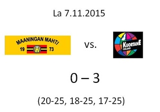 Ottelun lopun nousu antoi toivottavasti positiivista virtaa Mahdille, joka saa nyt harjoitella joukkuepeliä kuntoon ja parannella toipilaat ennen lauantaina 21.11. Maaningalla pelattavaa seuraavaa ottelua. Vastus ei tuolloin ainakaan kevene, sillä Mahti-areenalle saapuu arkkivihollinen Susiraja Volley Joensuusta. Tätä taistelua ei kannata missata, joten mahtimiehet toivovat kauden ennätysyleisöä kannustamaan kotijoukkuetta takaisin voittojen tielle.