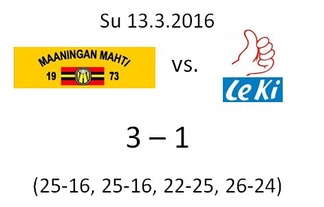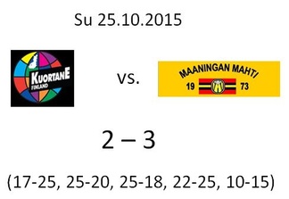 Mahti taisteli hienon 3-2 voiton Kuortaneen Valmennuskeskuksen joukkuetta (U18 maajoukkue) vastaan myöhään sunnuntai-iltana pelatussa ottelussa. Eräpisteet olivat Mahdin vinkkelistä katsottuna 25-17, 20-15, 18-25, 25-22 ja 15-10.