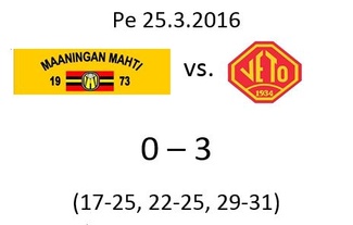 Tappio mutkisti Mahdin tietä ylempään jatkosarjaan - varsinkin kun Susiraja Volley nousi syvyyksistä 3-2 voittoon samaan aikaan Kyyjärvellä pelatussa KyKy-Betset ottelussa. No, kaikki on Mahdilla edelleen omissa käsissä, joten ei ole syytä vaipua synkkyyteen paluumatkaa pitemmäksi ajaksi, vaan katse täytyy kääntää heti tiukasti eteenpäin kohti Nilsiän kohtaamista Itsenäisyyspäivänä.