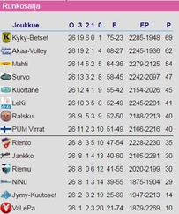 11. Vammalan Lentopallo II 12. Team PUM, Virrat