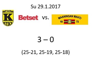 Mahtimiehet suorittivat siis totaalisen kasvojen pesun ja palasivat voittojen tielle. Onnistuneen esityksen jälkeen joukkueen on mukava lähteä treeniviikkoon ja sen päätteeksi haastamaan vierasottelussa sunnuntaina 29.1. sarjakakkonen KyKy-Betset sen kotiluolaan Kyyjärvelle. Mahdin ja KyKy-Betsetin otteluista ei ole tunnetta puuttunut aikaisemminkaan, joten mielenkiintoinen vääntö on jälleen luvassa kotijoukkueen ollessa ylivoimainen ennakkosuosikki kolmen ulkomaalaisvahvistuksensa turvin. Ja siirtoikkunahan on vielä kuun loppuun saakka auki, joten jää nähtäväksi vieläkö Hannu Kalliojärvi kaivaa joukkoihinsa lisää pelaajia kuten monena vuonna on tapahtunut...