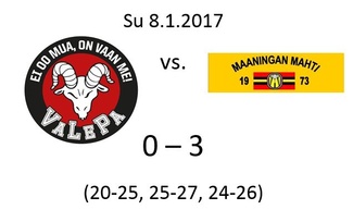 Mahtimiesten vieraaksi saapui lauantaiseen otteluun uusi tuttavuus 1-sarjassa, Vammalan Lentopallon 2-joukkue. VaLePa on seurana ollut jo pitkään Suomen huipulla lentopallossa saavuttaen menestystä sekä Miesten Mestaruusliigassa että monilla eri junioritasoilla. VaLePa II koostuu nuorista valtaosin A-juniori-ikäisistä pelaajista, ja joukkue on lähtenyt ennakkoluulottomasti haastamaan kokeneempia joukkueita ykkössarjaan. Tiedossa oli, että joukkue osaa vauhtiin päästessään pelata hyvää lentopalloa - se on käynyt jo ilmi kauden ensimmäisten otteluiden aikana, joissa VaLePa II on etenkin kotikentällään pistänyt monta joukkuetta ahtaalle.