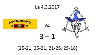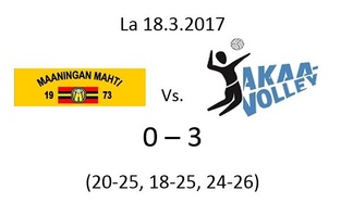 Toinen välieräottelu pelataan Maaningan Urheilutalolla lauantaina 18.3.2017 klo 14.00. Mahtimiehet toivottavat kaikki tuolloin tervetulleiksi paikalle kannustamaan kotijoukkuetta voittoon. Samana päivänä pelataan Kuopiossa myös Mestaruusliigan paikalliskamppailu Leka Volley - Sampo Volley Studentialla klo 17.00. Lentopallon ystävillä on siis oiva mahdollisuus nähdä kaksi huikeaa kamppailua samana päivänä, koska alkamisajat on porrastettu sopivasti.