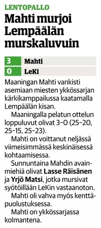 Otteluraportti LEKA Volleyn sivuilla