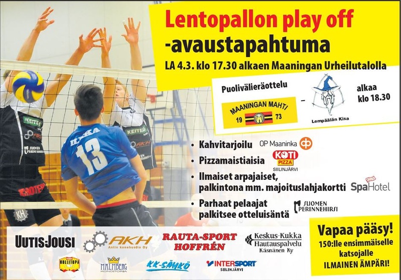 Täytetään la 18.3. jälleen Maaningan Urheilutalon katsomot ja näytetään Akaa-Volleylle mitä play off -huuma Maaningalla on parhaimmillaan!