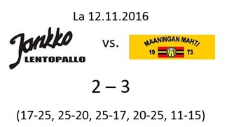 Mahtimiehet kohtasivat sunnuntai-iltapäivän kotiottelussaan siis Loimaan Jankon, joka oli tiukan väännön jälkeen kärsinyt Mahdille 1-3 -kotitappion kauden aikaisemmassa kohtaamisessa. Tämän päivän kotiottelun Mahti pelasi poikkeuksellisesti Kuopiossa perinteisellä Pohjantien koulun areenalla, ja tarjosi näin oivan mahdollisuuden myös pitäjän keskustaväelle nähdä ykkössarjan lentopalloa. Ottelun järjestelyt tehtiin yhteistyössä Puijo Wolley:n kanssa ja homma toimi kaikinpuolin moitteettomasti. Suurkiitos PuWon väelle, oli mukava käydä kylässä!