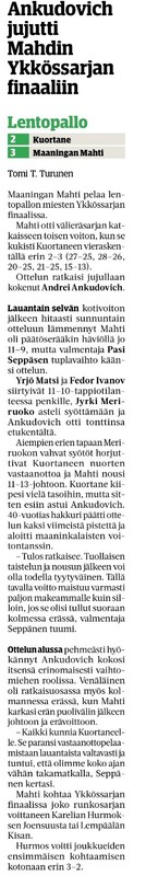 Savon Sanomien artikkeli ottelusta (tilaajille)
