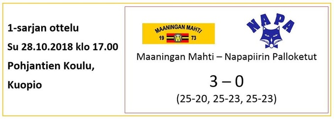 Lieneekö pitkähkö bussimatka vienyt Mahtimiesten viimeisetkin "mehut", sillä peli lähti tosi huonosti liikkeelle eikä se oikein missään vaiheessa palannut normaalille tasolle. Tulos oli sitten sen mukainen ja Karhulan Veikot otti ansaitun kotivoiton, kun Mahtimiehillä oli vaikeuksia erityisesti vastaanotossa ja syötössä läpi koko ottelun. Surkean avauserän jälkeen toiseen ja kolmanteen erään Mahtimiesten otteet jo paranivat hieman, mutta ei vaan riittäneet loppuun asti. KaVe parempi tällä kertaa suoraan 3-0.