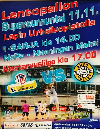 tule paikalle (vaikka kotijoukkueen järjestämällä bussikyydillä) nauttimaan todellisesta lentopalloviihteestä. Ottelu alkaa klo 17.00.