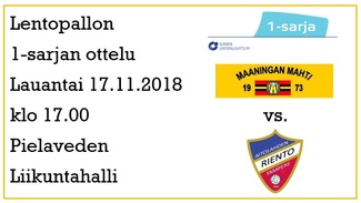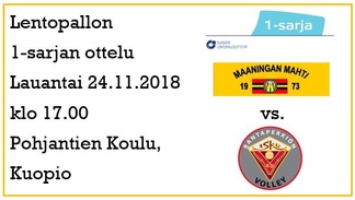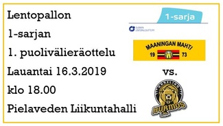 Puolivälierien 1. osaottelu Maaningan Mahti - Karelian Hurmos Pielaveden Liikuntahallilla lauantaina 16.3.2019 klo 18.00 - TERVETULOA!