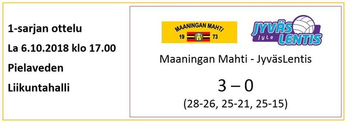 Kuortaneen joukkue aloitti kautensa jo viime lauantaina JyLen vieraana Jyväskylässä häviten pelin siellä suoraan 3-0. Kaksi erää siellä oli mennyt selkeästi kotijoukkueelle, vain kolmannessa Kuortane oli pystynyt pistämään paremmin hanttiin ja haastanut JyLeä kunnolla. Mahti siis aloitti kauden vapaaviikonlopulla. Seuraavaa vapaata saavatkin Mahtimiehet odotella pitkälle loppuvuoteen asti, sillä tahti peleissä on sellainen, että joka viikonloppu pelataan joulukuun alkuun asti. Lentisherkkua on siis tarjolla Pielavedellä useana viikonloppuna.