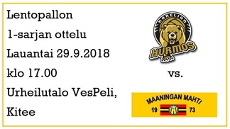 Lauantaina Kiteellä Vespelissä klo 17 aloitetaan. Ottelusta mahdollisesti saatavilla livekuvaa, asiasta tiedotetaan lähempänä. Peliä voit kuitenkin seurata Suomen Lentopalloliiton Livescoresta.