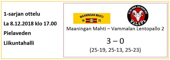 Vammalan Lentopallon 1-sarjajoukkue joutui poistumaan Pielavedeltä ilman erävoittoja saatuaan tarjottua Mahtimiehille vastusta oikeastaan vain ottelun kolmannessa erässä.