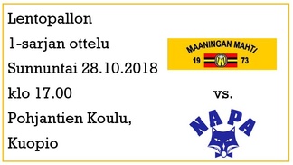 Peli pelataan siis la 24.11. Kuopiossa, Pohjantien koululla klo 17 alkaen. Tämä peli kuuluu niihin, jotka on vaan nähtävä. Nyt kaikki Mahtihenkiset paikanpäälle kannustamaan kotijoukkuetta lentoon!