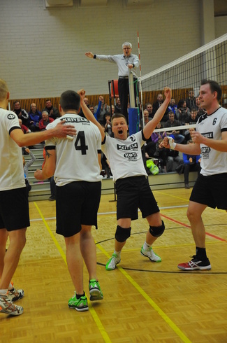 Myö vietiin eka erä ihan pystyyn ja sit ol Iskun vuoro. Kolmas käänty taas meille. Neljänteen erään otettiin erän alku 2-10 pataan ja sit kaivettiin taikuri Luttisen hatusta ne kuuluisat viimeiset ässät. Kentälle komennettiin aluksi Julle Lauriitsion tilalle ja sitten Toni Hesen paikalle. Kurottiin erä tasatilanteeseen ja suatiin jopa ottelupallo. Mut ei maistunu. Nii vaan livahti tikkari pois suusta ja päästettiin peli 5. erään. Se myö vietiin erän loppuun asti selkeessä johossa, mut sit taas piti ruveta puristamaan lentopallomailaa. Onneks Maijala sai kuitenkin tapettua neljännen ottelupallon, jonka jälkeen saimme aloittaa aikamoiset voitonjuhlat!